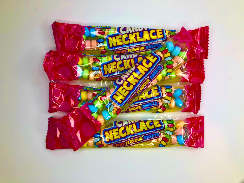 A portion of Candy Necklaces. We have over 125 other varieties to choose from. These wrapped and pre packed sweets come is 2 size bundles rather than weight and can be added to Pick n mix Sweet Boxes too!