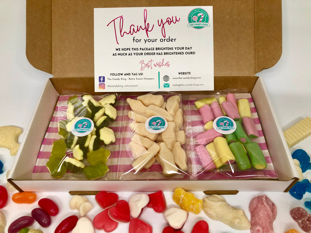 - Sweet Boxes - our letterbox range with 3 or 6 varieties of sweets or 1kg box