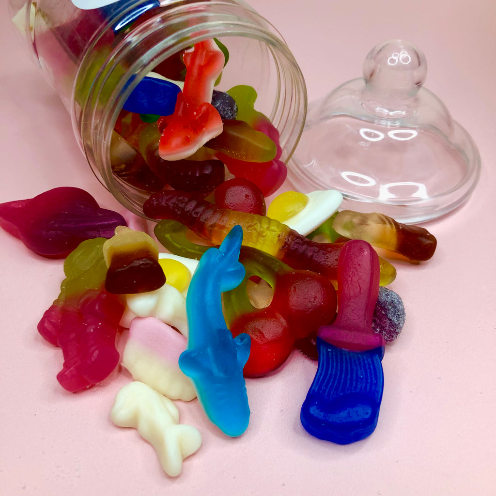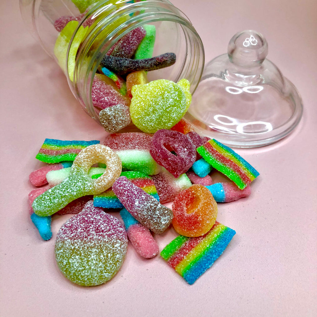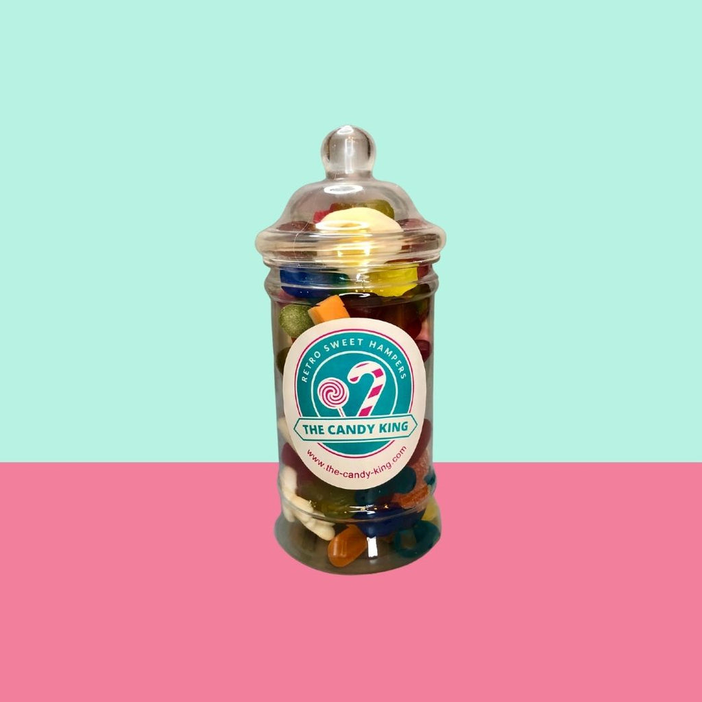 A Traditional Candy Jar that includes 7 varieties of delicious jelly, fizzy and sour sweets. A mixed jar filled to the brim of sweets to get the mouth watering.
