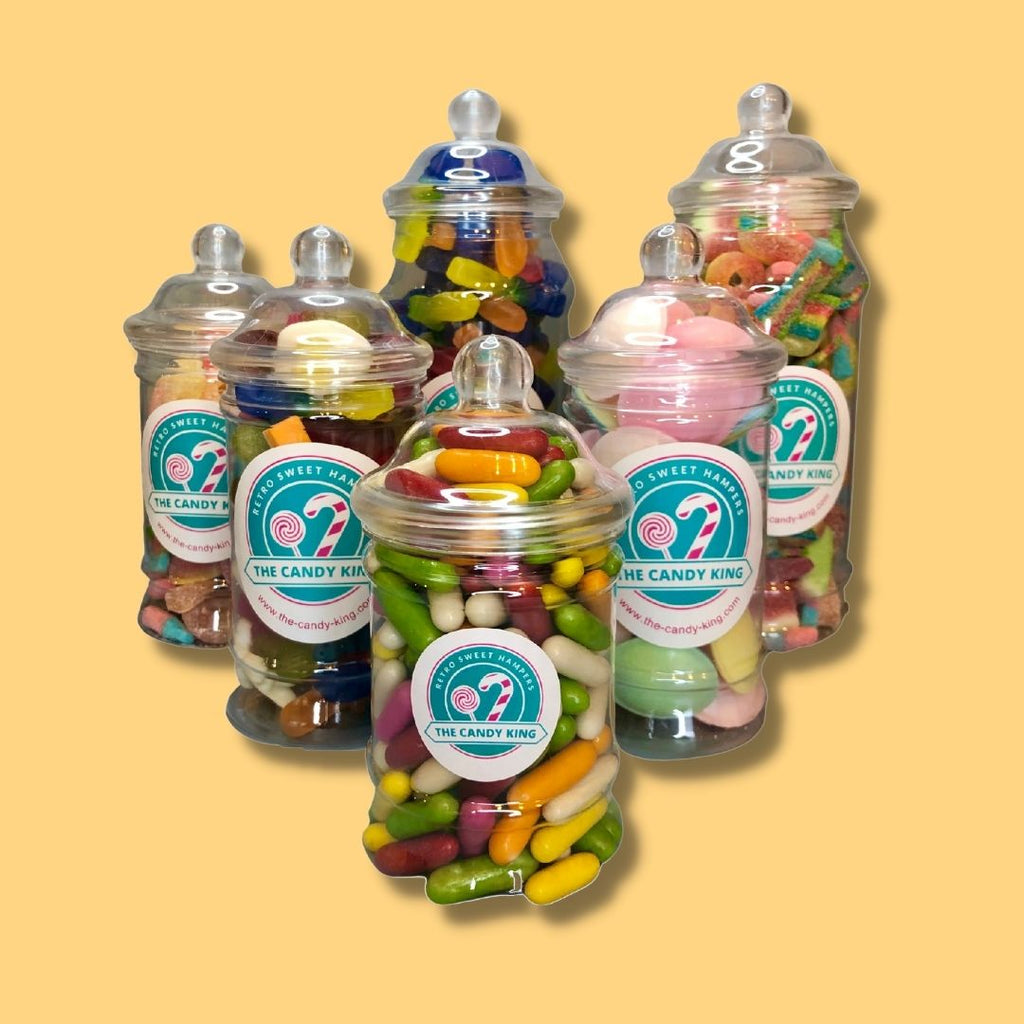 A Traditional Candy Jar that includes a variety of delicious jelly sweets. A mixed jar filled to the brim with sweets to get the mouth watering.